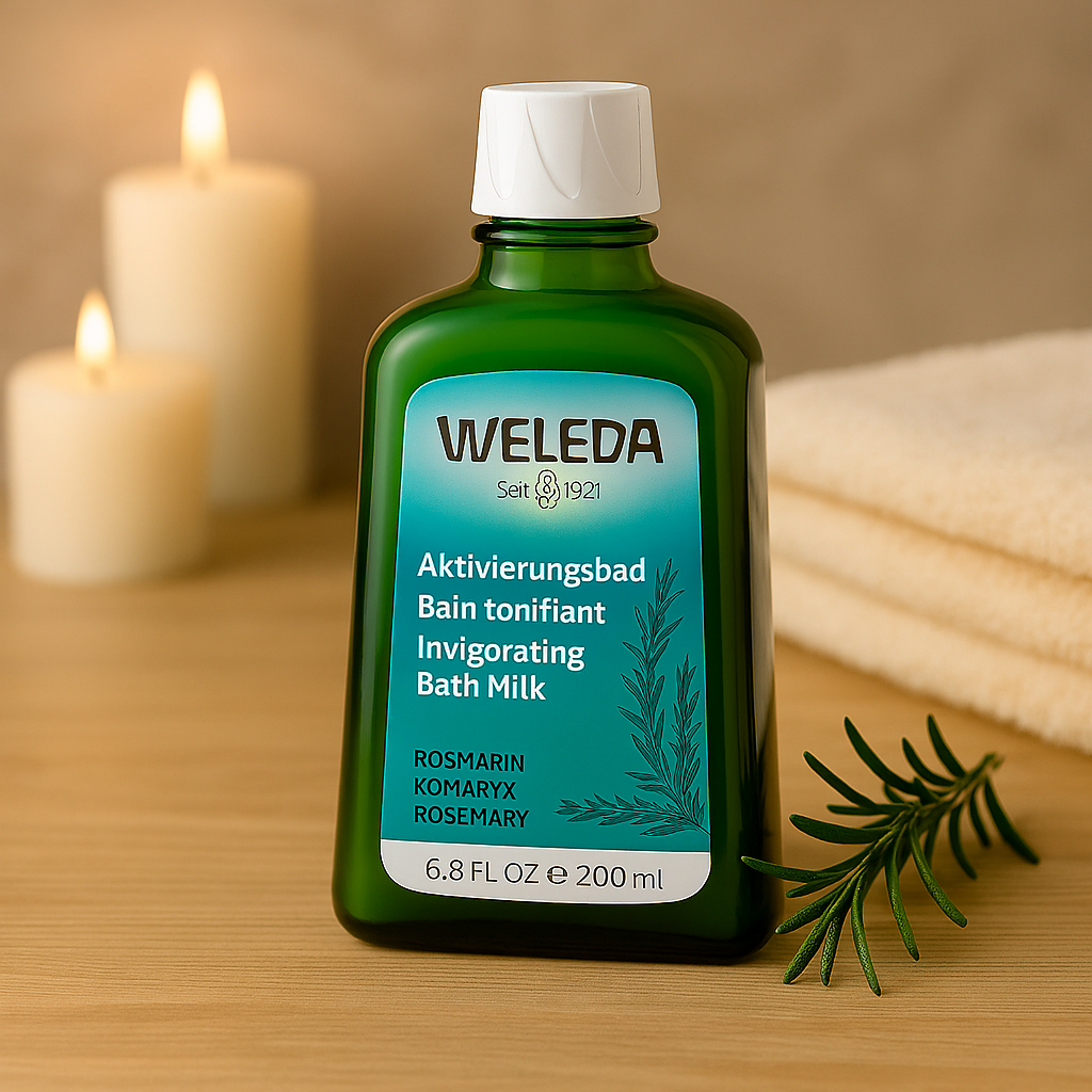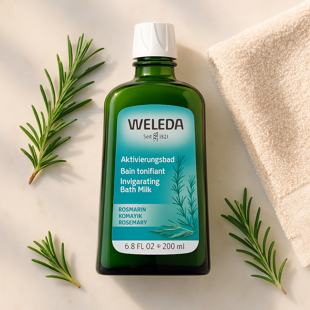 Infused with the stimulating essence of rosemary, this bath milk is your go-to for an energising soak that awakens the senses and refreshes the body. The essential oil of rosemary, harvested from sun-drenched Mediterranean landscapes, delivers a lively, invigorating aroma that helps drive away fatigue and restore vitality.