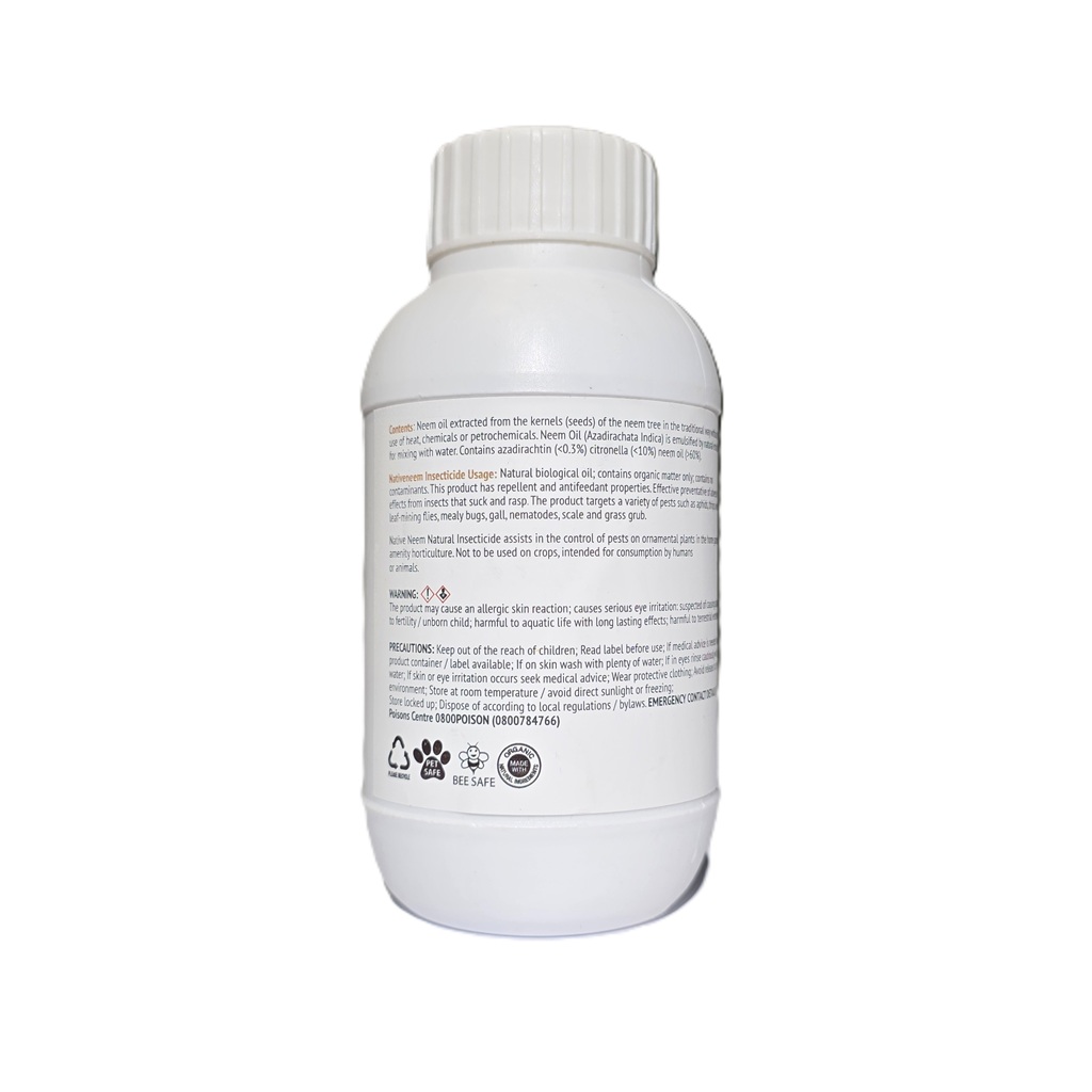 Native Neem Organic Neem Oil Insecticide is a premium, cold-pressed, water-soluble neem formulation designed for safe and effective garden care. Free from petrochemicals and synthetic solvents, it offers a pure, plant-based solution for managing pests and fungal issues in your garden.