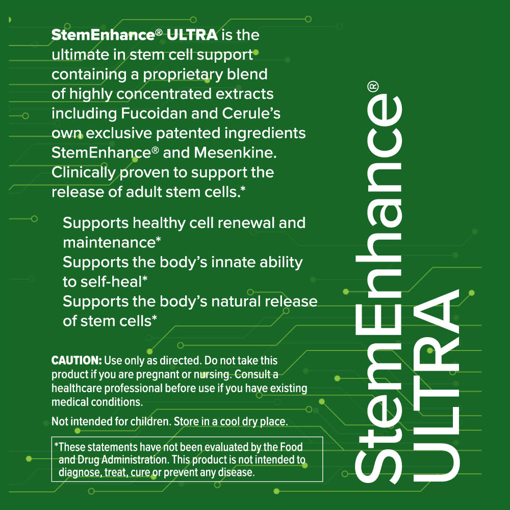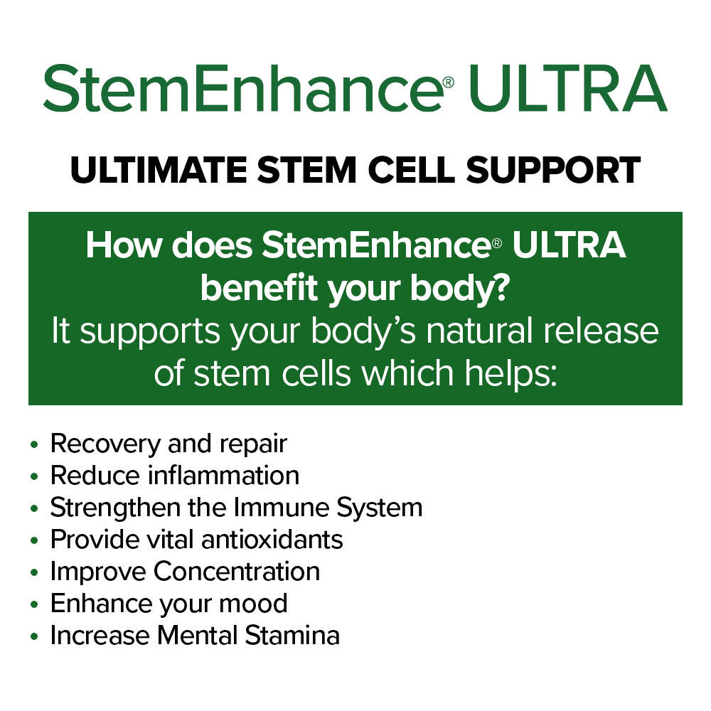 How It Works: StemEnhance® ULTRA is clinically tested to support the mobilization of adult stem cells from bone marrow into the bloodstream, aiding in tissue repair and overall wellness.